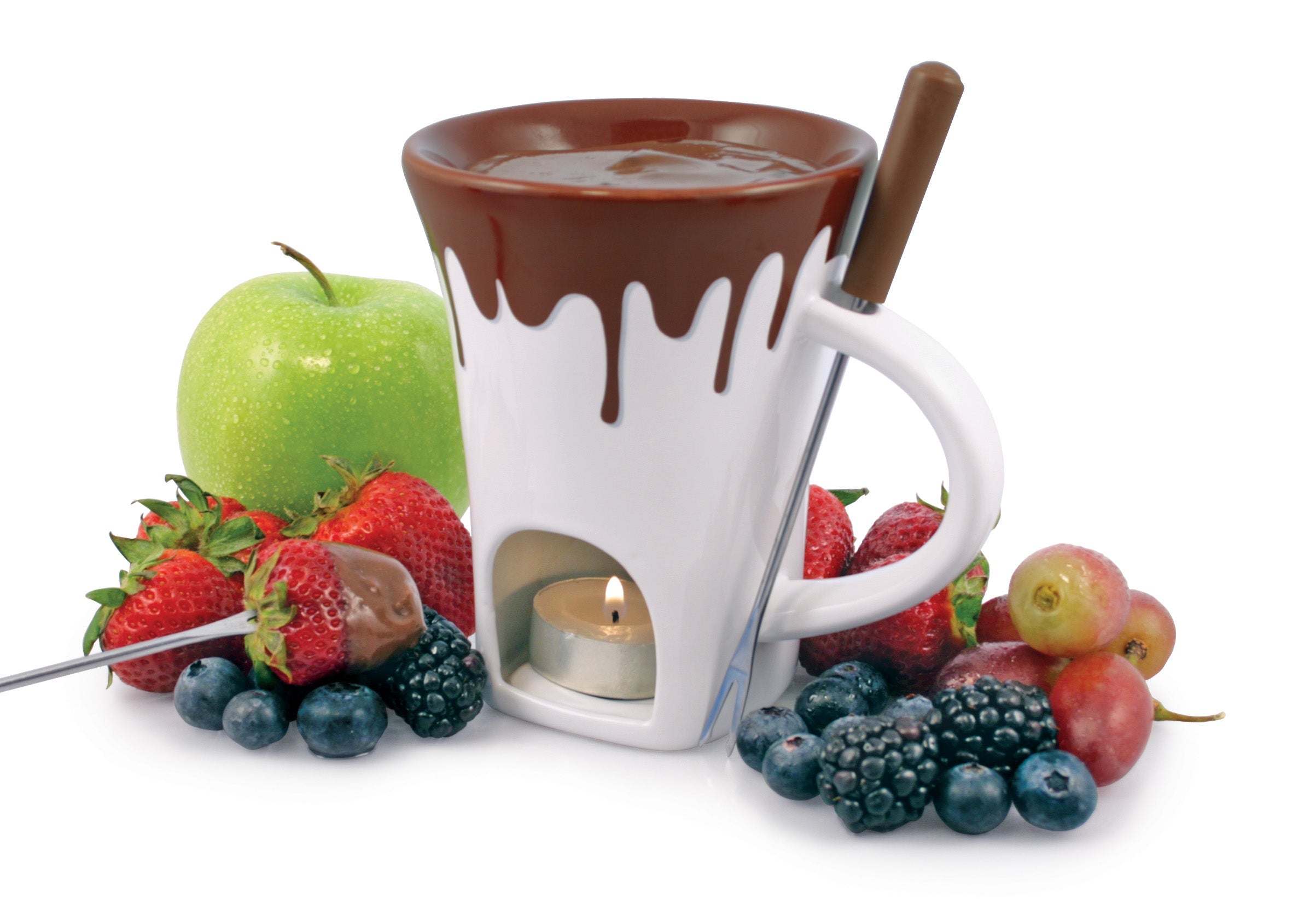Enjoy a perfect chocolate fondue experience at home with this ceramic fondue mug set. Made to melt easily with a tea light candle, it is great for making chocolate-dipped strawberries.